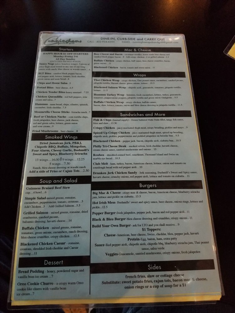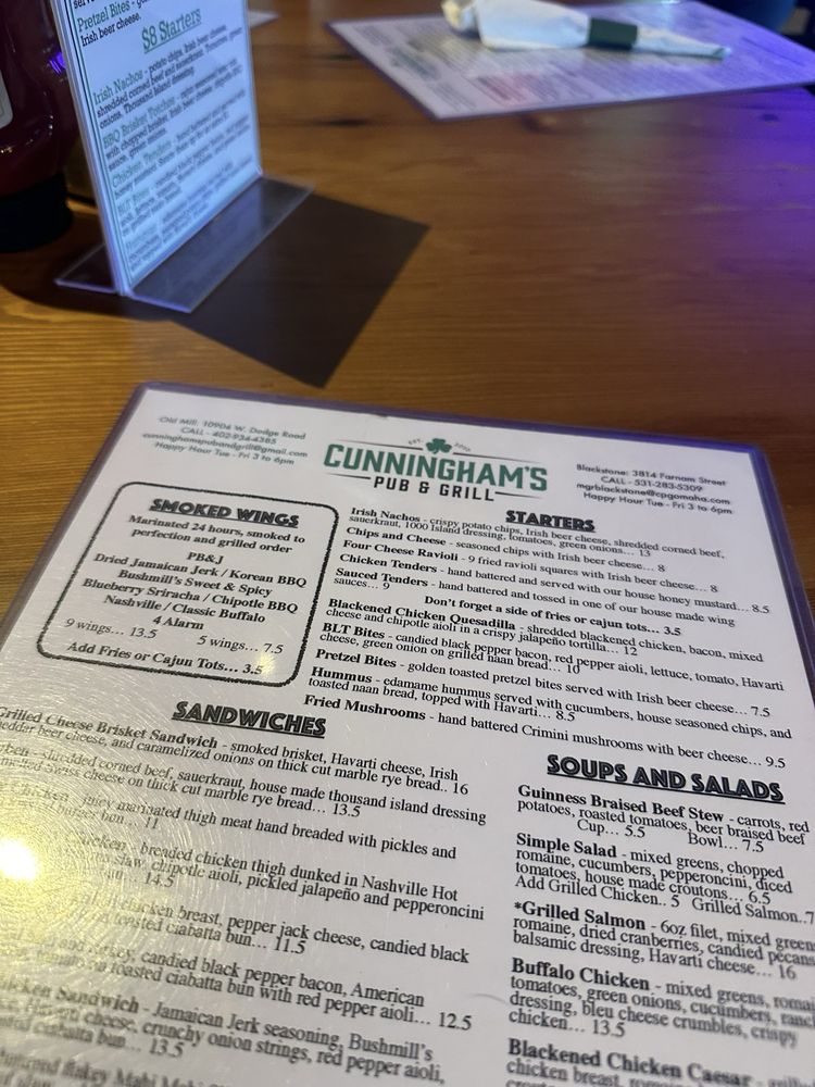 Cunningham’s Pub and Grill, located in Omaha, NE, offers a diverse menu of New American cuisine in a pub-style setting. The restaurant provides a range of amenities including delivery, takeout, reservations, outdoor seating, and catering services. It is a casual dining spot with a moderate noise level, making it suitable for both groups and families with kids. With free Wi-Fi, happy hour specials, a full bar, TV, and a pool table, Cunningham’s is a lively venue perfect for a night out. The menu features a variety of dishes suitable for lunch and dinner, with Saturday nights being particularly popular. My experience at Cunningham’s Pub and Grill was delightful, with the dishes being flavorful and well-prepared. I highly recommend trying their signature items for a unique and satisfying dining experience.